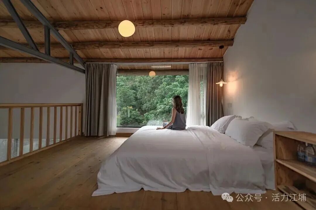 菁木山舍是由一座旧时知青学校改造而成,保留了红砖的质朴、木梁的轮廓,和岁月留下的安静心跳。在这里,时间仿佛被拉长:你可以什么也不做,只是倚窗读书、檐下品咖、享受着玻璃水泳池和私汤……等一场不期而遇的日落。